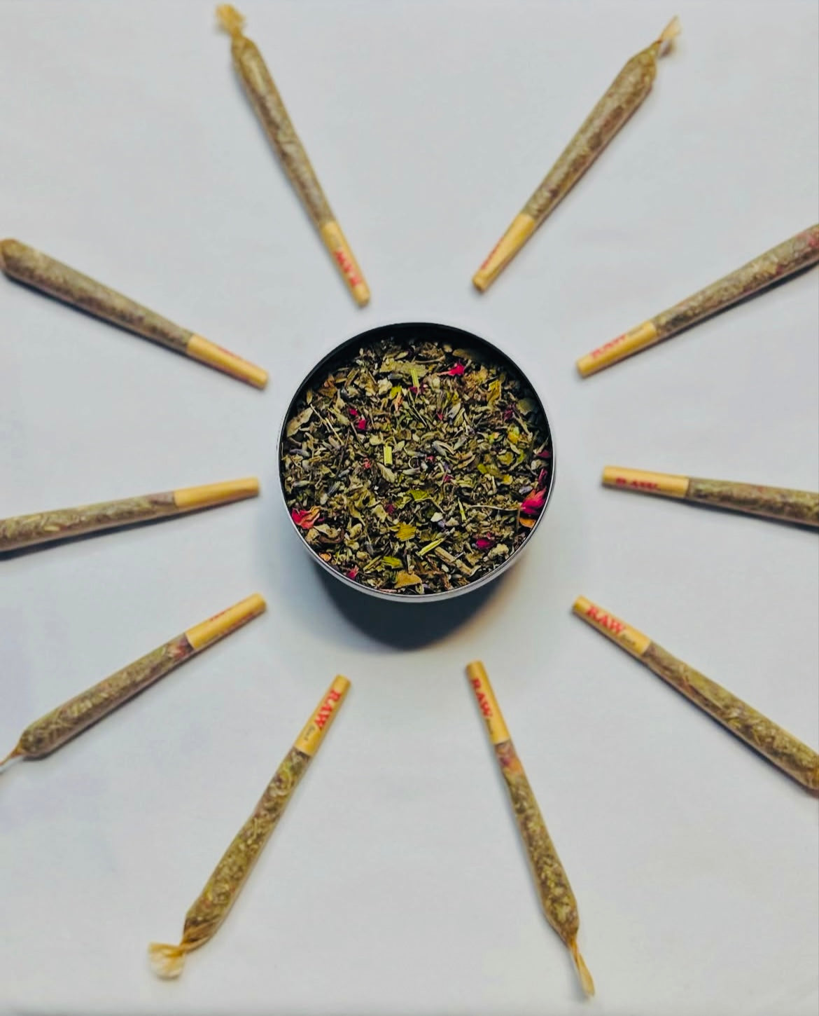 HerbFlow is a calming herbal blend that supports relaxation, balance, and spiritual wellness—perfect for sipping or smoking.