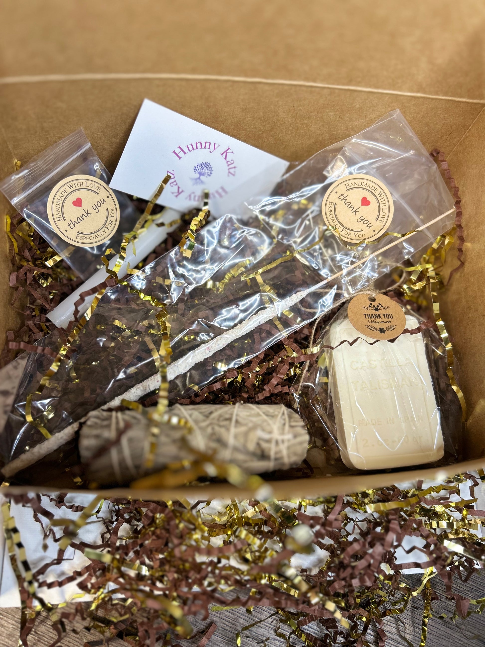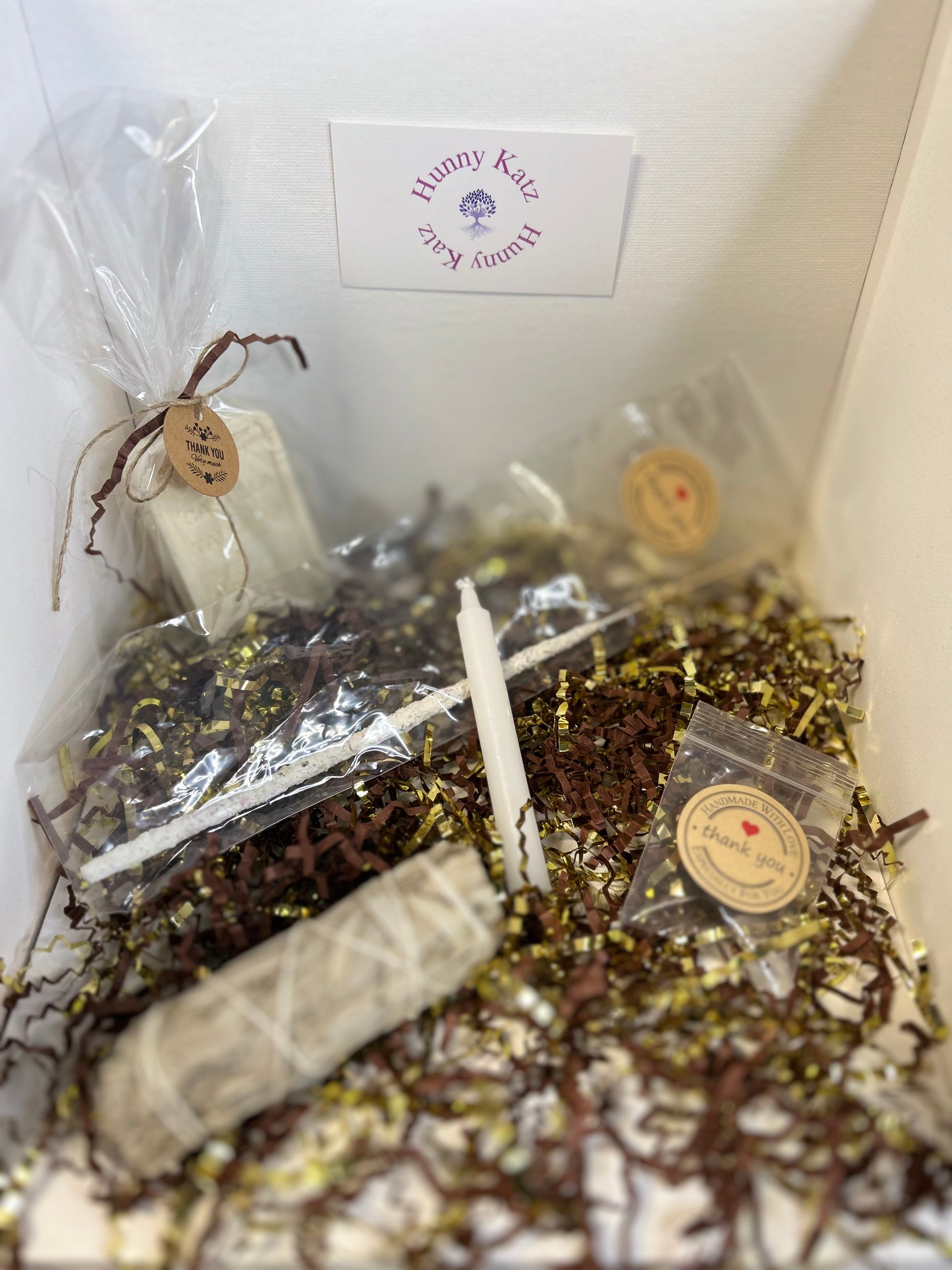 Our all-in-one cleansing kit is designed to purify your space, uplift your spirit, and restore balance. Each kit includes a handcrafted natural soap, palo santo incense, 5 powers incense, a white candle, and sage—everything you need for grounding, protection, and renewal. Perfect for rituals, meditation, or simply creating peace and positive energy in your home.